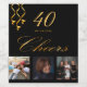 A bottle label for a glamorous 40th birthday party. Personalize and add 3 of your own photos, age 40 and a date.  Date of birth or the date of the party.  Golden colored letters. The word: Cheers, in faux gold written with a trendy hand lettered style script.  Elegant, classic chic black background color, decorated with faux gold party streamers.