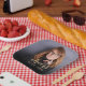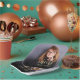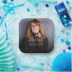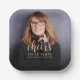 These custom 40th birthday paper plates feature the guest of honour's personalised photo, name, and birthday, along with the word "Cheers" in elegant gold-coloured calligraphy script. A dark screen helps make the text pop. A great way to celebrate someone who's turning forty!