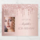 A sparkling wine label for a girly and glamourous 40th (or any age) birthday party. A faux rose gold metallic looking background with an elegant faux rose gold glitter drips, paint drip look. Personalise and add your own photo of the birthday girl. The text: The name is written in dark rose gold with a large modern hand lettered style script with swashes. To keep the swashes only delete the sample name, leave the spaces or emoji's in front and after the name. Template for name, age 40 and a date.