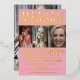 Simple pink and gold photo and a little gold heart 40th birthday invite. Bold foil graphic and with three placeholders for photos on the front and one large photo on the reverse. Customise with your own fortieth birthday event details. Unique design by www.mylittleeden.com