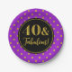 40th Birthday Party Purple Black Gold Dots Paper Plate