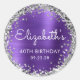 40th Birthday Party Purple Silver Glitter Classic Round Sticker