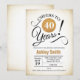40th birthday party invitation for men or women. Elegant invite card with faux gold foil and retro creamy background. Features typography script font. Cheers to 40 years! Can be personalized into any year. Perfect for a milestone adult bday celebration.