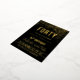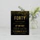 This formal, elegant, trendy, modern fortieth birthday party foil postcard invitation is suitable for men or women. It comprises golden clean lines, stylish upper case gothic script, and sophisticated gold foil text on a black background with showers of sparkling, shimmering gold confetti and party streamers.
