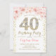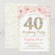 40th Birthday Party Invitation. Elegant design in faux glitter gold, pink and white. Stylish floral invitation with diamonds and roses. Perfect for a glam women's bday celebration. Printed Zazzle invitations or instant download digital template.