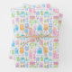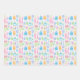 Fortieth birthday bright pink, blue, green, purple and orange party cake, presents and balloons. Each present has the number 40 the birthday person feel special. Other sweet stuff like butterflies, flowers, xo's, and hearts are added throughout the pattern. Pretty wrapping paper for an 40th birthday celebration.