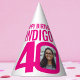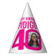 Bold add your own photo and name white with bright pink text party hat. Ideal for a special 40th birthday party celebration. Other matching birthday items and colour options are available. Original graphic art and design by www.mylittleeden.com