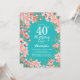 40th Birthday Pink Floral Flowers Teal Background Invitation
