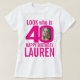 40th birthday pink on white, look who is 40 custom photo and name t-shirt. Fun 40th personalised photo black and white birthday tee design. Personalise this birthday shirt with a photograph of the birthday girl in the middle of the number 0. Great idea for adding some fun to a milestone fiftieth birthday gift. Other matching items and colours are available. Exclusive design by Sarah Trett for www.mylittleeden.com