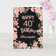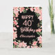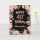 40th Birthday Pink Peach Watercolor Floral Black Card