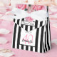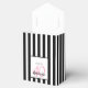 A favour box for a 40th birthday party. Classic black and white vertical stripes as background. With girly and feminine pink Flowers, roses as decoration. With the text: Thank You!