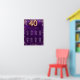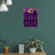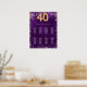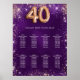 A seating chart for a 40th birthday party. A deep purple background decorated with faux glitter, sparkles. The purple colour is uneven. Personalise and a name. 8 tables with 10 guests on each table.