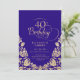 40th Birthday Purple Gold Roses Invitation