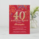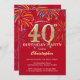 40th Birthday Red and Gold Rainbow Fireworks Invitation