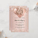 For an elegant 40th birthday. A rose gold background. Decorated with rose gold, pink faux glitter, sparkles and balloons. Personalise and add a name, and party details. The name is written with a hand lettered style script, number 40 with balloon style fonts.