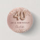 40th birthday rose gold blush glitter name tag 3 cm round badge