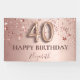 Elegant, classic, glamourous and girly for a 40th birthday party. Rose gold and blush pink, gradient background. Decorated with rose gold and pink stars. Personalise and add a name. With the text: Happy Birthday. The name is written with a modern dark rose coloured hand lettered style script. Number 40 is written with a balloon style font.