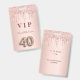 A modern, stylish and glamorous badge for a 40th birthday party. A faux rose gold metallic looking background with an elegant faux rose gold glitter drip, paint drip look. The name is written with a modern dark rose gold colored hand lettered style script. With the text: VIP Number 40 is written with a balloon style font, script.