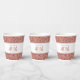 Decorate for her party in style with these 40th Birthday Rose Gold Glitter Personalised Paper Cups. This modern stylish design has a trendy rose gold faux glitter background around the paper cups. The text has name followed by "40th birthday" in grey and matching pink calligraphy script lettering on white stripe on the centre of both sides. Click personalise template option and enter name.
