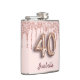 40th birthday rose gold glitter pink friends hip flask
