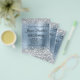 Faux sparkly silver glitter against a shiny light and pail blue ombre faux metallic foil graphic image.