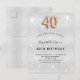 A modern, stylish and glamourous invitation for a 40th birthday party. A faux silver looking background, decorated with glitter dust. Personalise and add your name nad party details. Number 40 is written with a faux gold balloon style font, script.