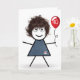 40th Birthday Stick Girl with Red Balloon Card