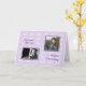 On a pale lilac background with a repeating pattern of number 40's, this card can be personalized with your own text and photos to make a very special 40th birthday greeting. There are two spaces for your photos on the front. One is rectangular, and one is square. Each photo has a narrow white border and dark purple 'frame'. The accompanying text is in matching purple. It currently reads "From small beginnings... ...40 years in the making", or you can edit this to suit. The greeting inside is a simple "Happy 40th birthday" but you can also substitute your own greeting as required. [Photography © Storytree Studios, Stanford, CA]