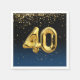 Gold mylar party balloons on gradient black and blue with gold star confetti for 40th anniversary or birthday party.