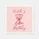 As you see this unique and elegant birthday napkin has a well designed template. With red hand drawn bow ribbon champagne glasses with milestone 40th inside it with whimsical hand written name. All on pink background . Which you can customise easily by clocking on the personalise button.