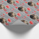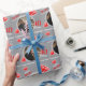 Wedding anniversary wrapping paper in ruby red, white and silver grey. Personalise this ruby 40th-anniversary paper with your own couples photo, message, and the anniversary year. Currently reads Congratulations! Nana and Granddad, Happy Ruby Anniversary 40 years. Ruby stone gold eternity ring printed with your photo in the centre, graphic wrap. Ruby Wedding Anniversary wrapping paper is ideal to wrap up a special gift for a 40th wedding Anniversary which is associated with rubies or any other ruby red celebration. Uniquely design by Sarah Trett for www.mylittleeden.com and www.mylittleedenweddings.com