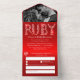 Ruby 40th wedding anniversary party or event with photo and detachable RSVP invitations can be sealed so no envelope is required. A beautiful ruby in gemstones graphic wedding anniversary invitations, personalise with your own wedding anniversary party details, a photo of the happy couple. Make it easy for you and your guests to send as no envelope is required simply handwrite on your sealed invitations and your guests can reply with the detachable rsvp and affixing a stamp for quick and easy guest responses. The fortieth wedding anniversary is associated with the red gemstone ruby. Other matching items are available. Graphics and design by Sarah Trett for www.mylittleeden.com