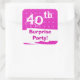 40th Surprise Birthday Party Pink Pattern Template Square Sticker
