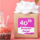Here's a trendy design for a surprise 40th birthday party. Fun! All text is customisable. Matching items are available. See below for a sample save the date postcard, invitation, sticker and thank you card collection.