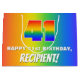 This joyful and fun birthday giftbag design features a large number “41” having a colourful rainbow spectrum inspired gradient pattern. It also features the message “HAPPY 41st BIRTHDAY,”, and a custom recipient name. The background also features a cheerful multicolored rainbow spectrum inspired gradient pattern. Personalised birthday themed gift bags like this might be a fun way to wrap gifts or presents being given to celebrate somebody’s 41st birthday. [~Z0000577]