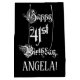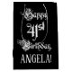 This fancy and ornate birthday-themed giftbag design features the message “Happy 41st Birthday,” in opulent script style text, on a black coloured background. It also features a custom recipient name. A birthday themed gift-bag like this might be used when giving a gift or present in celebration of somebody’s 41st birthday. [~Z0000557]