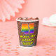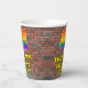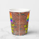 This exciting and fun urban street art and graffiti themed birthday paper cup design features a large number “41” with a colourful rainbow spectrum gradient inspired pattern, along with the message “Happy 41st Birthday,”, and a customisable name. The background features a brick wall pattern. Colourful, vibrant paper cups like this might be fun to have at a birthday party/celebration being held to honour somebody’s forty first birthday. [~Z0000543]