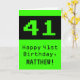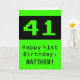 The front of this geeky and fun birthday greeting card design features a large green vintage video game style number "41". It also features the birthday greeting message "Happy 41st Birthday,", and a name that can be customized. The inside features a customizable birthday greeting message, or could perhaps be cleared and left blank if a message is to be written by hand instead. A silly and nerdy birthday greeting card like this might be used to acknowledge the forty first birthday of a scientist, a computing historian, or somebody who appreciates vintage video games. [~Z0000430]