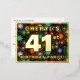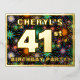 The front of this bold and eye-catching forty-first birthday celebration foil invitation postcard design features a custom name, a large number “41st”, the message “BIRTHDAY PARTY!”, and a border. The background of the front has a joyful, colourful pattern that resembles bursting celebratory fireworks. The back features personalised details about the event, such as the date, time, place, and any other relevant information. Customised invitations like these might be a fun way to let guests know about a birthday party/gathering being held in celebration of somebody’s 41st birthday. [~Z0000609]