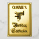The front of this fancy forty-first birthday party foil invitation/announcement card design features the message “41st Birthday Celebration” in ornate script-style text. It also has a customisable name. The back features personalised details about the event, such as the date, time, place, and any other useful information. Elegant, ornate, customised invitations like these might be used to invite guests to a birthday party/celebration being held in celebration of somebody’s 41st birthday. [~Z0000596]