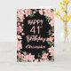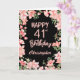41st Birthday Pink Peach Watercolor Floral Black Birthday Card. For further customisation, please click the "Customise it" button and use our design tool to modify this template.
