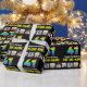 This joyful and bold birthday themed wrapping paper design features a large number “41“ having a colourful rainbow spectrum inspired gradient pattern, plus the message “Happy 41st Birthday,“ and a personalised recipient name. There are also photos that can be personalised, perhaps with photos of the recipient, the recipient’s family and friends, and/or the sender(s) of the gift. Wrapping paper like this might be used when giving a gift or present in honour of somebody’s forty-first birthday. (Photography © Storytree Studios, Stanford, CA.) [~Z0000670]
