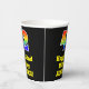 This colourful and fun birthday paper cup design features a large number “42” having a rainbow spectrum gradient inspired pattern. It also features the message “Happy 42nd Birthday,”, and a custom name. The background is coloured black. Colourful, vibrant paper cups like this might be fun to use at a birthday party/celebration being held in celebration of somebody’s 42nd birthday. [~Z0000537]