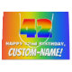 This joyful and cheerful birthday-themed gift bag design features a large number “42” with a colourful rainbow spectrum inspired gradient pattern, along with the message “HAPPY 42nd BIRTHDAY,”, and an editable recipient name. The background also features a vibrant multicolored rainbow spectrum inspired gradient pattern. Personalised gift bags like this might be a fun way of wrapping birthday presents or gifts being given to somebody who is celebrating their 42nd birthday. [~Z0000577]