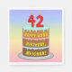 This fun and joyful birthday paper napkin design features a cartoon-style depiction of a three-tier birthday cake having numeral-shaped candles on top showing the number “42“, along with the message “HAPPY 42ND BIRTHDAY,”, and a customisable recipient name. The background features a multi-colour pastel rainbow spectrum inspired gradient pattern. Paper napkins like these might be used when celebrating somebody’s 42nd birthday. [~Z0000623]