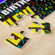 This upbeat and joyful birthday themed jigsaw puzzle design features a large number “42” with a multicolored rainbow spectrum inspired gradient pattern, along with the message “HAPPY 42nd BIRTHDAY,”, and a custom recipient name. The background features a bold pattern of musical notes of various sizes and colours. An exciting, customisable birthday puzzle like this might be a fun way to send birthday wishes to somebody who is celebrating their forty-second birthday. These might be extra special for a music-themed birthday party. [~Z0000608]