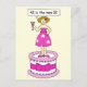 Cartoon of a lady in pink, standing on a large pink and white cake holding a cocktail and saying '42 is the new 32'.