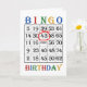 43rd Birthday card. Say Happy Birthday to a bingo player with a bingo card. The age is circled in red. A bingo crazy player will get a huge kick out of this card! Copyright Norma Cornes.