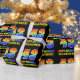 This cheerful, fun, and colourful birthday themed wrapping paper design features a large number "43" and the message "HAPPY BIRTHDAY,", both having a rainbow spectrum gradient inspired pattern colouring, along with a bold yellow personalised recipient name. The background is coloured black. Fun wrapping paper like this might be used when wrapping gifts being given to somebody in celebration of their 43rd birthday. [~Z0000475]
