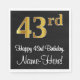 43rd Birthday ~ Elegant Luxurious Faux Gold Look # Napkin